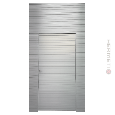 דלת כניסה בקו אפס משובצת פסי אלומיניום