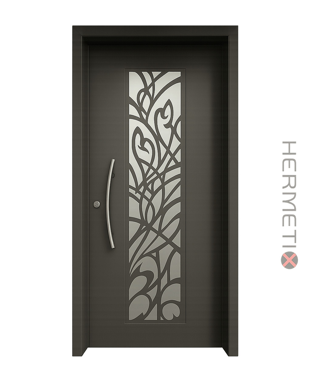 דלת כניסה מעוצבת עם חיפוי אלומיניום דו שכבתי בעיצוב אישי וצביעה בתנור. כוללת מערכת נעילה 3DLOCK, משקוף חסין לפריצה, צילינדר MT5, צירים נסתרים וסף אקטיבי כפול. אידיאלית לדירות או בתים עם כניסה מוגנת.