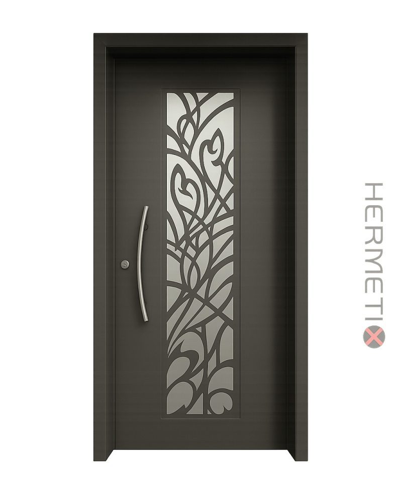דלת כניסה מעוצבת עם חיפוי אלומיניום דו שכבתי בעיצוב אישי וצביעה בתנור. כוללת מערכת נעילה 3DLOCK, משקוף חסין לפריצה, צילינדר MT5, צירים נסתרים וסף אקטיבי כפול. אידיאלית לדירות או בתים עם כניסה מוגנת.
